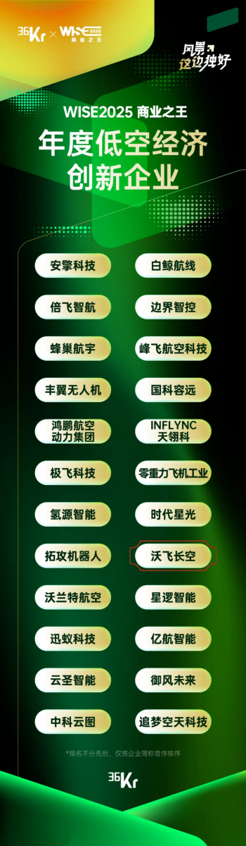 以下为「WISE2025 商业之王 年度低空经济创新企业」