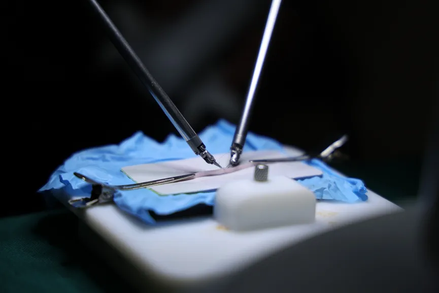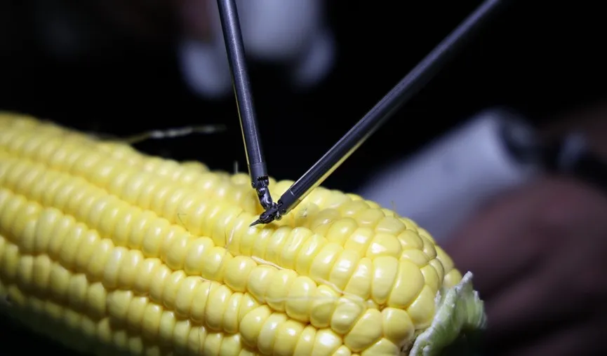在为期三天的展会中,迪视医疗展台展示了显微外科手术机器人在 1mm 硅胶管上的模拟血管吻合、玉米表面的显微缝合以及备受关注的 “芝麻剥皮” 极限显微操作演示。该机器人凭借微米级运动控制精度与高灵活性腕式手术器械设计,使医生能够在狭小手术空间中完成高难度显微操作,显著提升操作的稳定性与安全性。多位国内外教授与专家在现场亲自体验后,对其性能与潜力给予高度评价,并与技术团队进行了深入交流。
