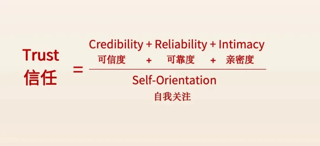 管理顾问 David Maister 与 Charles Green提出过一个信任公式(The Trust Equation)